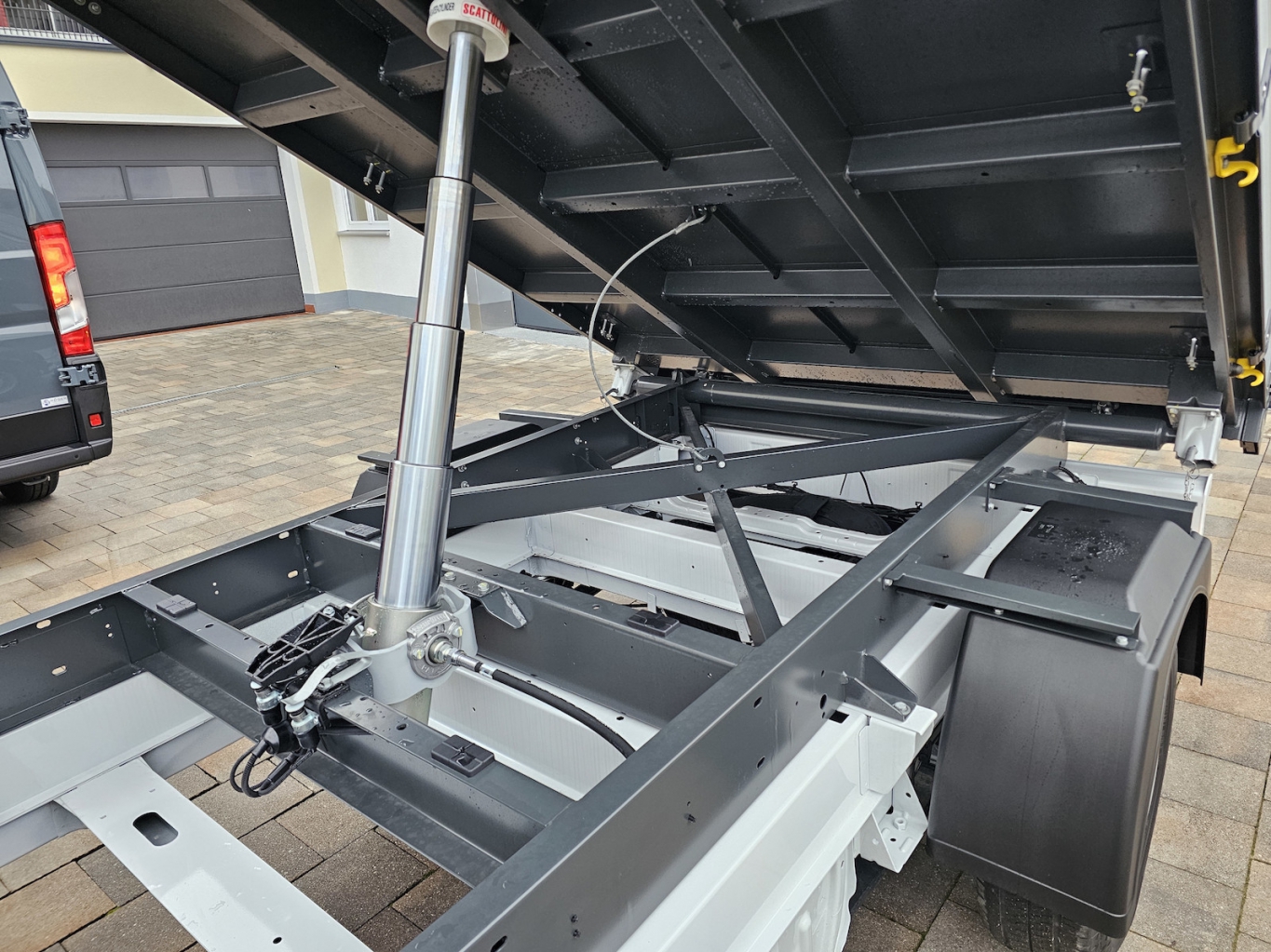 • Stabiler Dreiseitenkipper der Firma Scattolini mit Stahlboden und Alubordwänden